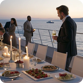 A perk with Azure is flexibility. Book your yacht anywhere from 1 hour for a quick business meeting with an investor, to 6 hours for a day out with family and friends. It's your time, your way.